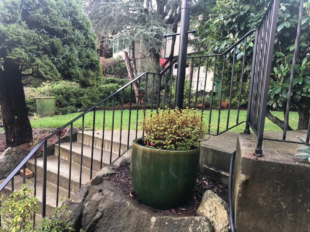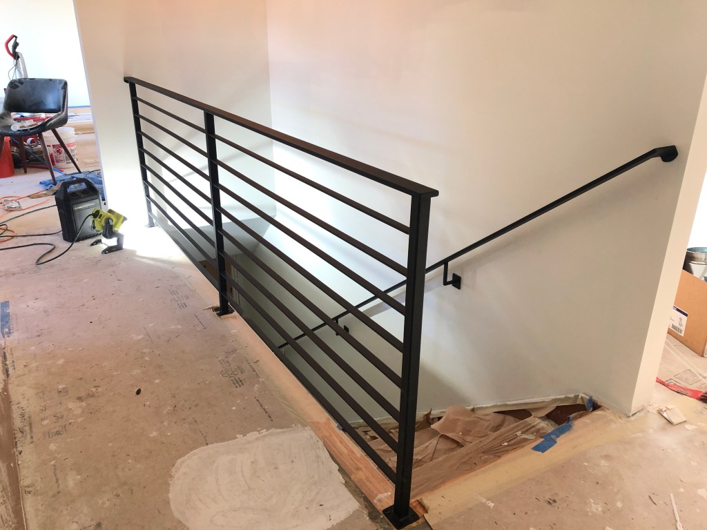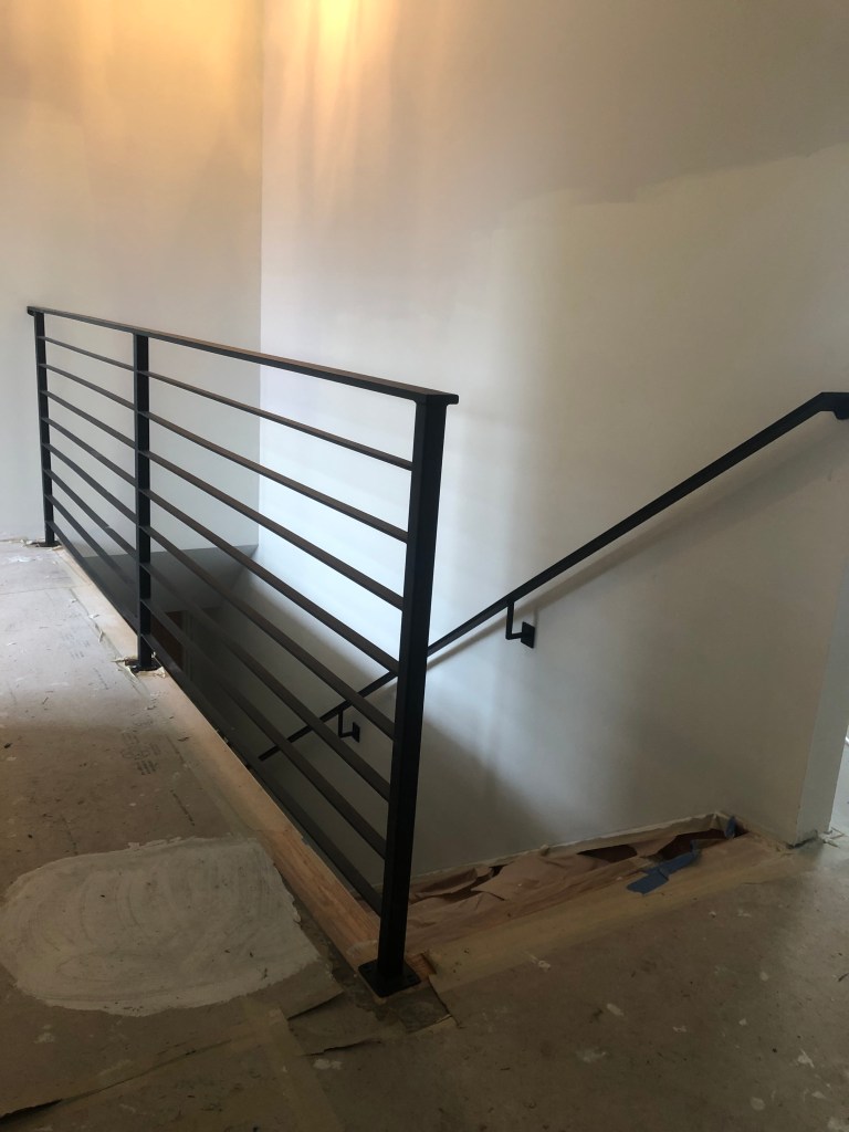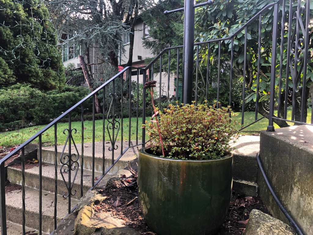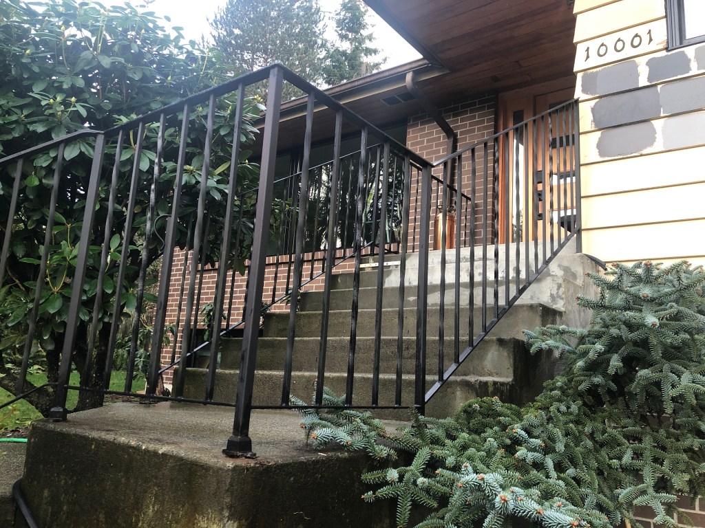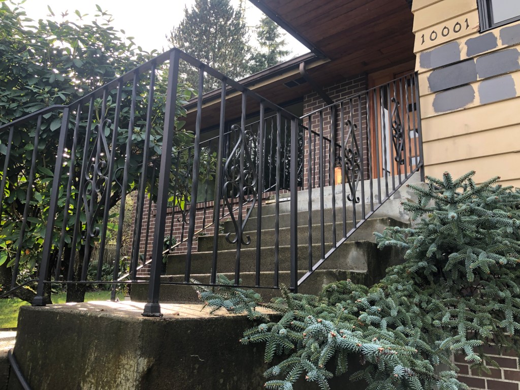 We had the decorative curlicues removed from the outside front step railings, and then replaced the original wooden bannister and railings inside leading down to the basement.