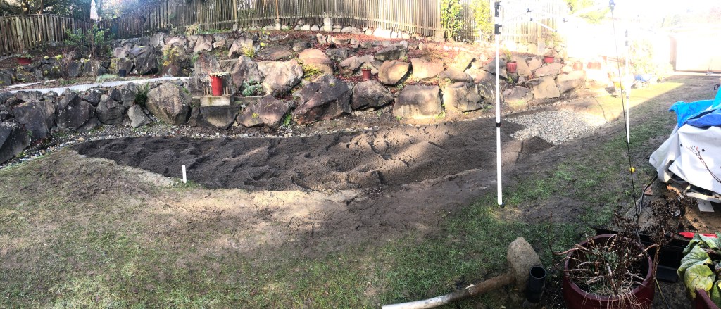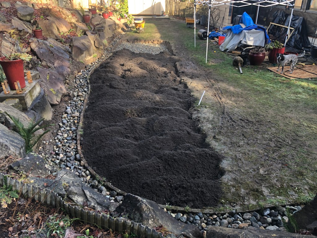 (They removed all that soil by hand: four guys digging it out with shovels and carting it in wheelbarrows around to their truck in the driveway… crazy.)
