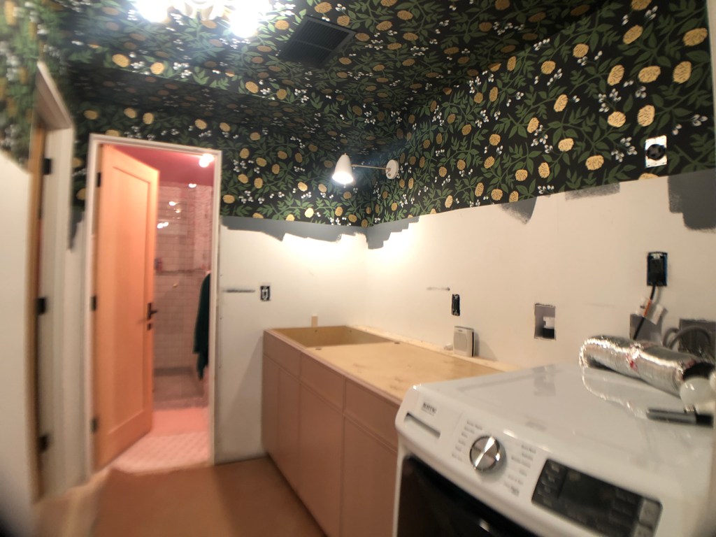 Laundry room renovation, July ’20 – March ’21 Posted byKJTMarch 9, 2021Posted inUncategorized original laundry area, we are moving it to the small room through door at left temp laundry/sinkwalls go uplower cabinets in, wall paper up Share this: Click to share on X (Opens in new window) X Click to share on Facebook (Opens in new window) Facebook Like Loading... Related